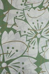 柄はすべて板場に生地を張り、職人の手で型をおくりながら染める手捺染加工をしています。
