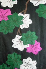 濃色などの染め物は先に無地染めを施し、柄部分の色を抜いて(抜染)染める多重加工をしているので、地色の発色が表染めのみの浴衣と異なります。